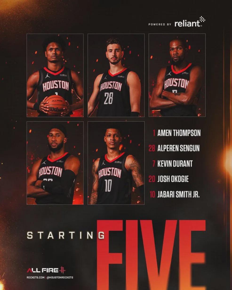 火箭这边,伊森、范乔丹和芬尼-史密斯因伤休战,雷霆中锋哈滕继续缺阵。火箭本场首发:阿门-汤普森、奥科吉、杜兰特、小贾巴里-史密斯、申京。雷霆首发:亚历山大、阿隆-维金斯、多尔特、杰伦-威廉姆斯、切特-霍姆格伦。