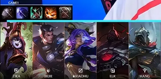 WBG选用:Zika塞恩;Jiejie赵信;Xiaohu维克托;Elk芸阿娜;Hang露露