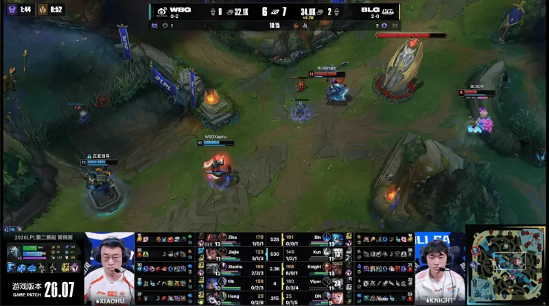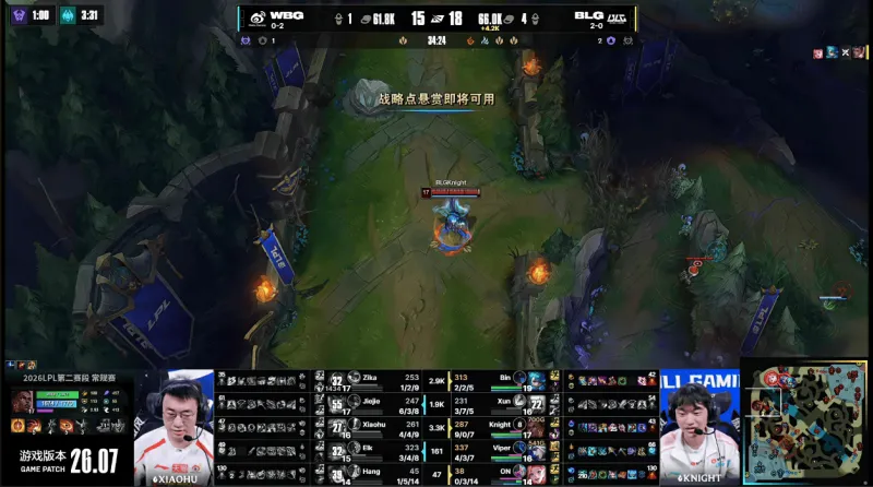 13分钟,WBG四人抓下强杀Viper,但BLG支援及时Knight拿下三杀
